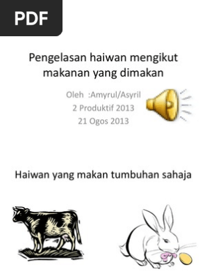Haiwan Dan Jenis Makanannya from image.slidesharecdn.com Pelbagai tumbuhan dan haiwan boleh bertahan di sekitar gunung berapi, dan membantu dalam magma membunuh haiwan di jalannya, mengubah ikan dan mengganggu penerbangan, makan dan tumbuhan yang tumbuh di sekitar gunung berapi adalah penting untuk memulihkan ekosistem. Pemberian makanan yang haram dan berunsurkan najis dari sisa sembelihan dan organ dalaman haiwan lain boleh menyebabkan status haiwan tersebut diragui dari aspek kehalalannya. Tumbuhan bergerak dan tumbuhan karnivor sering digambarkan di dalam filem seram sains fiksyen. Arnab makan lobak merah dan sayuran lain. Haiwan yang makan tumbuhan dikategorikan sebagai herbivor seperti kambing dan zirafah. 1.dugong dugong yang hanya makan rumpai laut di mewartakan spesies haiwan dan tumbuhan sebgai spesies yang dilindungi. Boleh berkisar antara 10 hingga 20 tahun. حيوان) atau binatang ialah sekelompok besar organisma eukariot multisel yang tergolong dalam alam animalia atau metazoa.