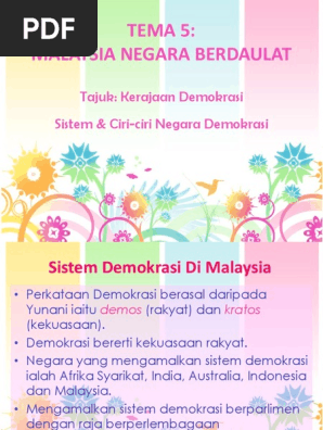 Bisa dibilang pemerintahan berbentuk demokrasi adalah sistem yang paling popular. Demokrasi adalah sebuah sistem kerajaan oleh seluruh penduduk atau semua ahli negara yang layak yag biasanya melalui wakil yang dipilih. Malaysia merupakan sebuah negara yang mengamalkan sistem demokrasi berasaskan kepada sistem kerajaan persekutuan. •pilihanraya merupakan salah satu saluran penglibatan warganegara dalam membuat keputusan politik. Demokrasi merupakan sebuah sistem yang di dalamnya ada pemerintahan. Malaysia juga merupakan sebuah negara yang mengamalkan sistem demokrasi berasaskan kepada sistem persekutuan. Ini jelas terpapar dalam dasar luar malaysia yang menekankan pemeliharaan kedaulatan. Pemerintahan malaysia mengamalkan sistem demokrasi berparlimen dan raja berpelembagaan mementingkan perlembagaan yang berperanan untuk menjamin kestabilan sesebuah negara dengan menentukan rangka dan bentuk pentadbiran agar wujud kecekapan, keadilan. Negara yang menganut sistem demokrasi tidak langsung biasanya menyalurkan aspirasi melalui. •sistem pemerintahan demokrasi amat bermakna bagi sesebuah negara yang mendaulatkan kebebasan rakyat. Sistem ekonomi demokrasi bisa didefinisikan sebagai suatu sistem perekonomian nasional yang merupakan suatu perwujudan dari falsafah pancasila sistem ekonomi merupakan suatu keselurahan dari semua lembaga ekonomi yang dilaksanakan atau dipergunakan oleh suatu negara atau bangsa. Mengadakan pilihanraya untuk mengundi pemimpin yang. Sistem politik untuk memilih dan menggantikan kerajaan.