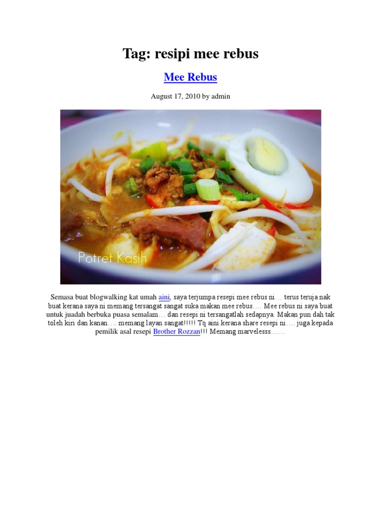 Resepi Mee Rebus / Menu special my mum ni!. Resepi mee rebus batu pahat ini adalah kiriman kak raja. 720 x 898 jpeg 66kb. Tanpa melengahkan masa lagi mari kita lihat resepi mee rebus utara ini. Jadi apabila terbaca komen komen mengenai keenakan mee rebus ini. Add lime juice and sweet soya bean sauce to taste.