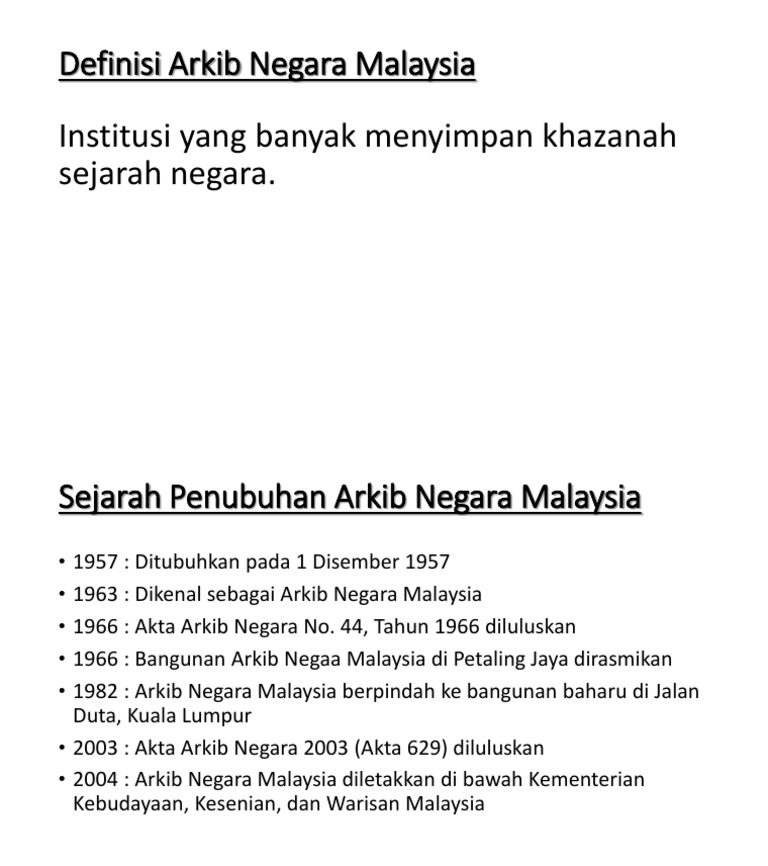 0.33% of people who visit kuala lumpur include national arkib of malaysia in their plan. Arkib negara dan ketua pengarah penubuhan arkib negara 4. Arkib negara malaysia jalan duta kuala lumpur 2012. Majlis menandatangani mou antara arkib negara malaysia dan datuk bandar kuala lumpur. 13 januari 2017 ( jumaat ) masa :